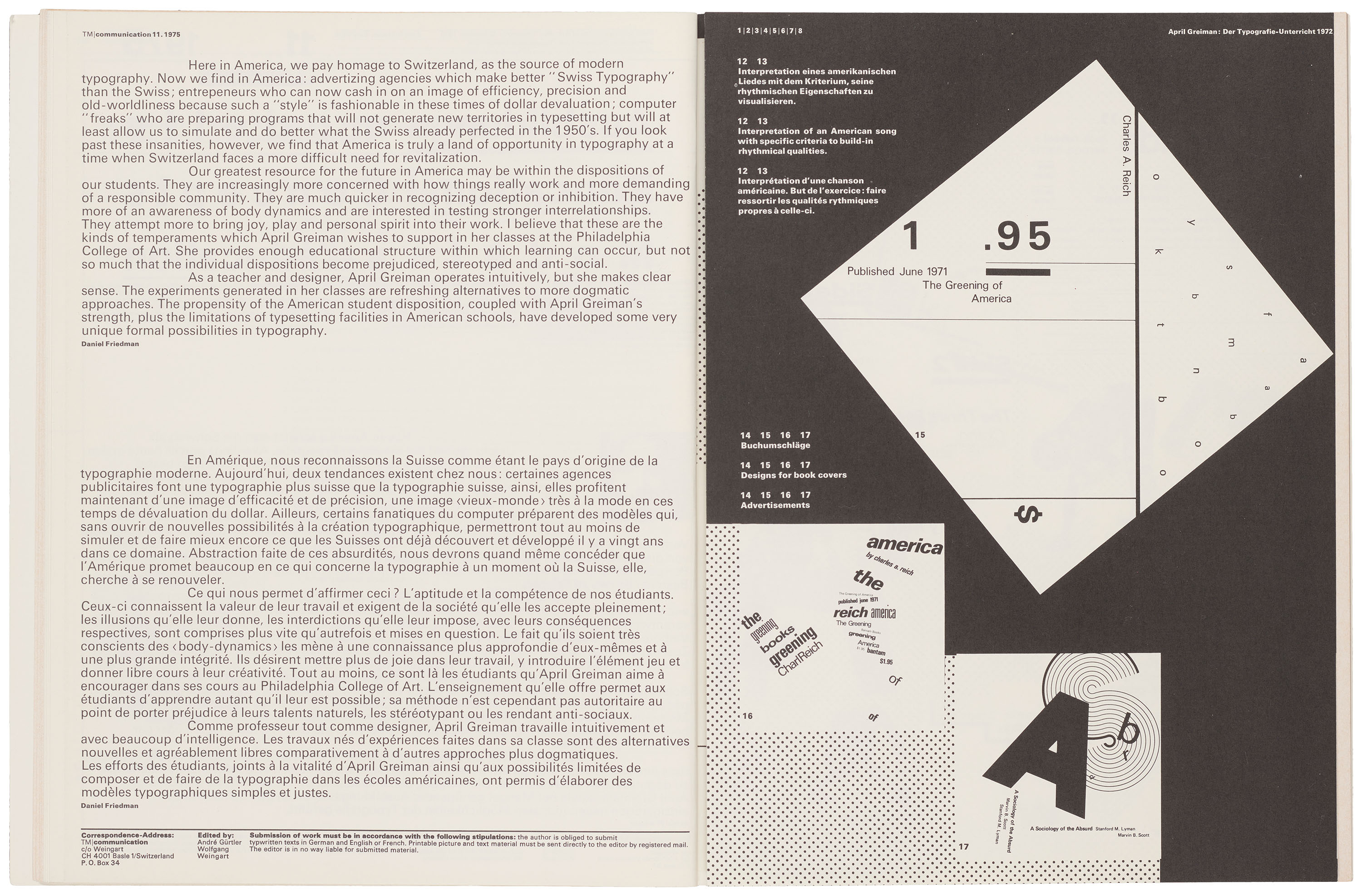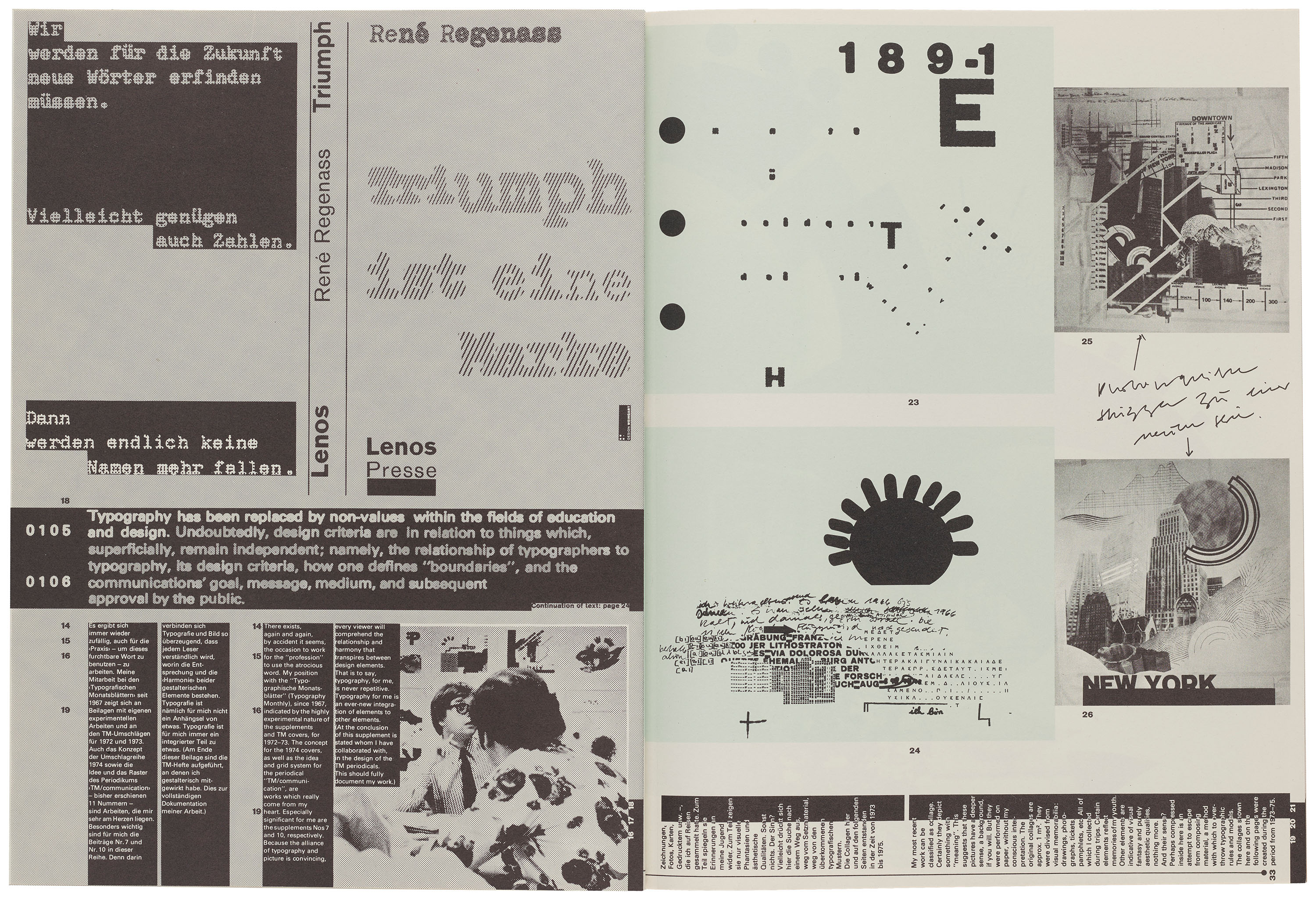 Although TM had long provided a platform for professional discourse, Weingart’s introduction of the “TM/communication” supplement expanded the scope of those conversations by inviting educators, institutions, agencies, and designers to directly engage with the magazine’s international audience. Like TM’s cover design competitions, which provided a venue for designers to showcase work, the supplement gave contributors considerable freedom in terms of medium and format, carving out a flexible space that reflected the increasingly expansive field of graphic design.
