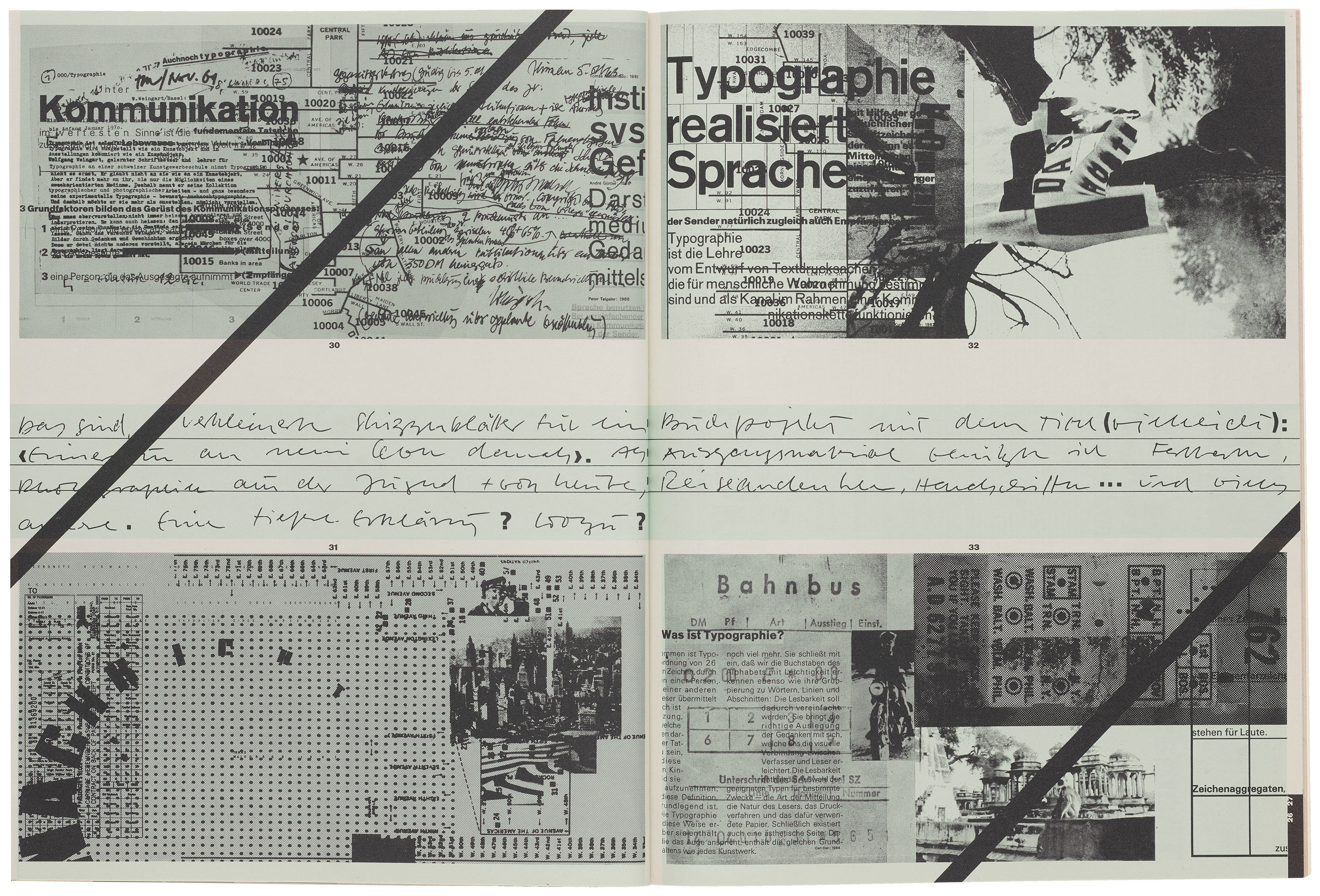 By this time, Weingart was already experimenting with materials and improvised compositions to answer Ruder’s rigorous project briefs. Their relationship was often contentious, and early disagreements might have ended with Weingart’s dismissal if not for the intervention of Armin Hofmann (1920–2020), who would later appoint him as a faculty member in the Weiterbildungsklasse für Grafik (Advanced Class for Graphic Design) postgraduate program established in 1968.