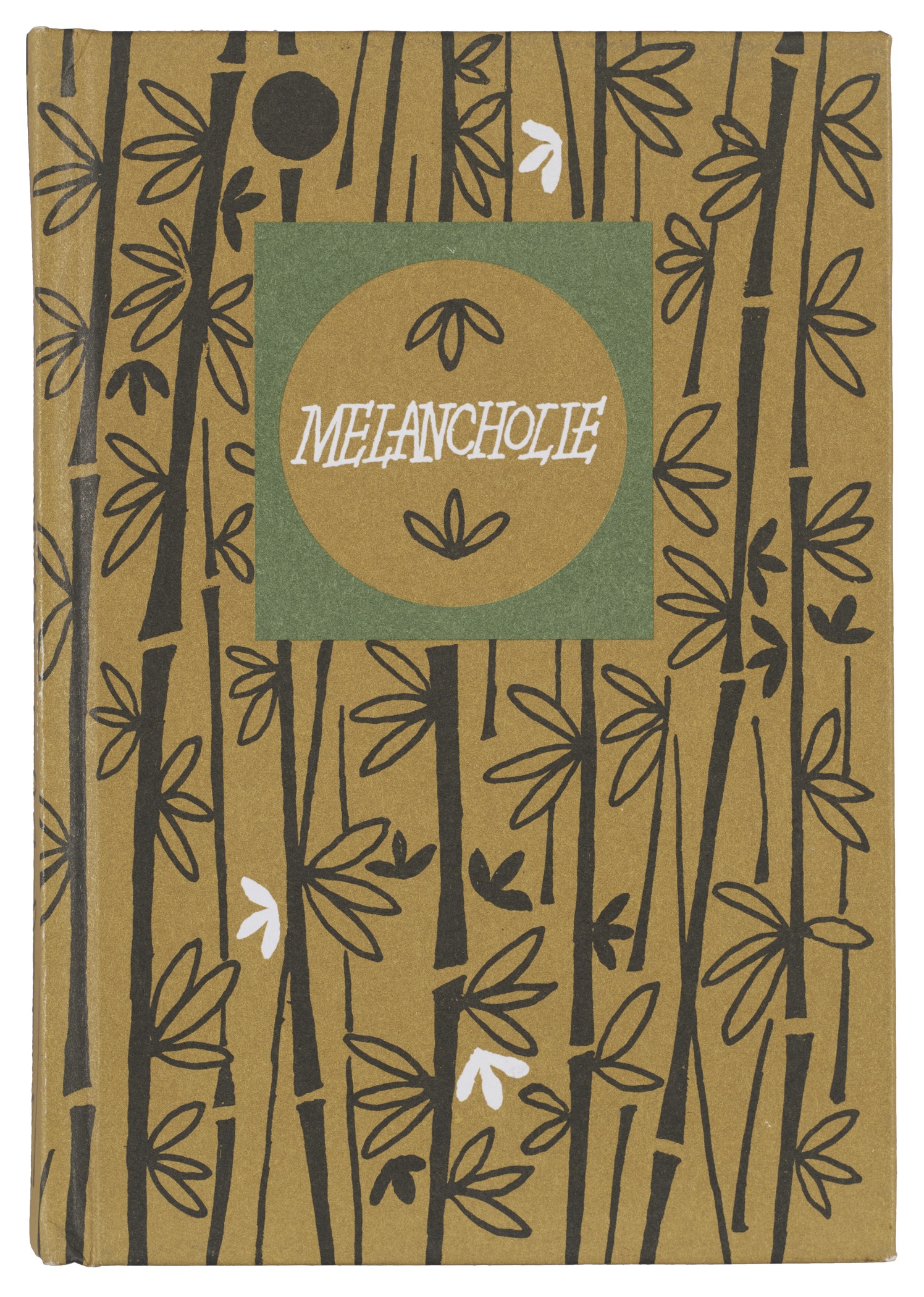 Vodáková typically worked within modest formats and production constraints, yet her compositions never feel cramped or utilitarian. She favored centered or gently asymmetrical arrangements, using space deliberately to create visual breathing room. This contributes to the meditative—poetic—quality often associated with her covers. Pattern and ornament play a subtle but important role in her work. Rather than illustration in a narrative sense, Vodáková often employed repeating motifs, textures, or abstract forms. Dots, lines, and ornaments function as visual accompaniment to the text. These elements rarely explain the book’s content; instead, they set a mood, much like a prelude in music. When figurative imagery appears, it remains understated and is usually more symbolic than literal. Carefully modulated color palettes also lend the series cohesion. Even within the modest production constraints typical of the time, she created covers that feel warm, intimate, and timeless. The only significant alteration to the design scheme appears in 1965, when the frame for the title switched from a lyre to a simpler circle framed in a square.