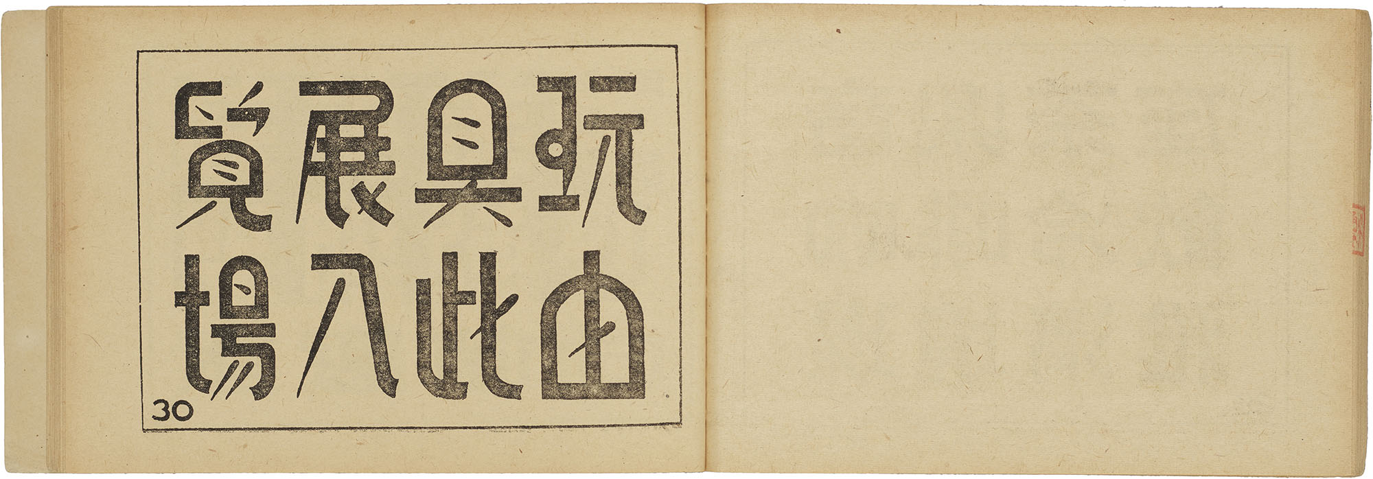 Early meishuzi manuals functioned like pattern books with little to no instructions. Small and pocket-sized, these horizontal booklets were thread-bound, sometimes using traditional Chinese stitch-binding techniques, or stapled. Sample lettering was printed on one side of the thin, fibrous paper typical in Chinese books.