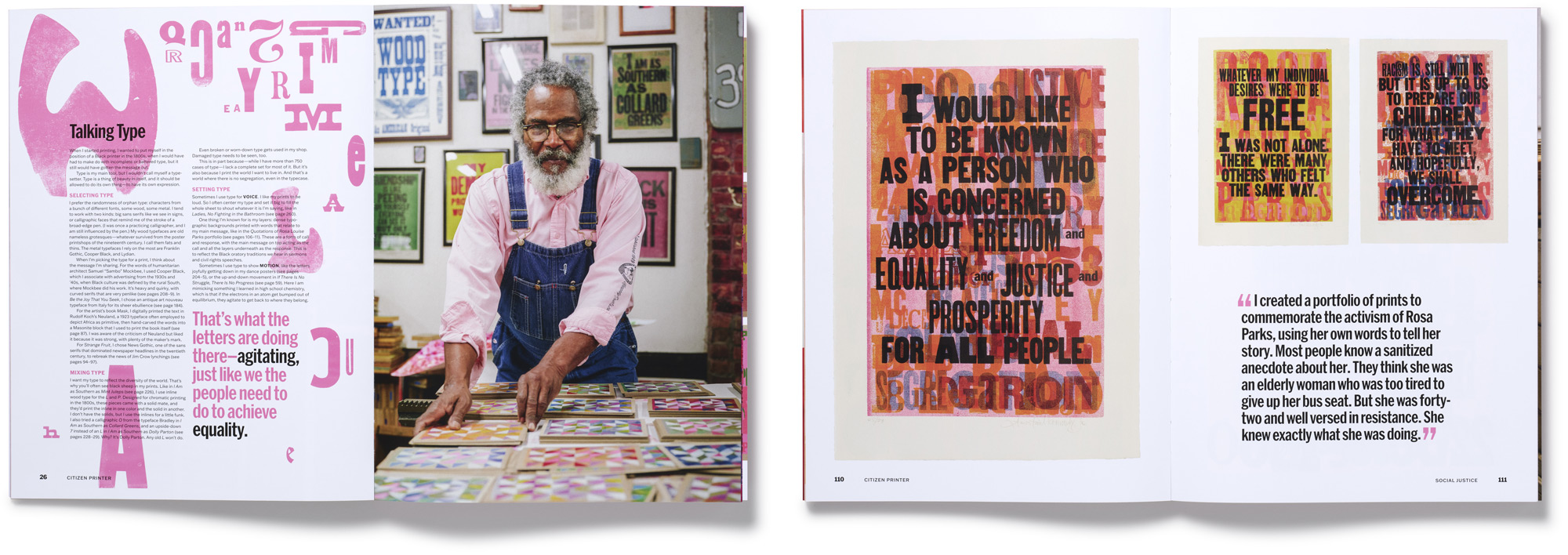 A vital monograph on a trailblazing contemporary Black artist, Citizen Printer features more than 800 reproductions representing the breadth of Kennedy’s letterpress prints (including rarely seen artist’s books), plus original portraiture of the maker at work, a powerful manifesto, and a foreword by New York Times bestselling author Austin Kleon, all presented in a dynamic and type-forward design from AIGA medalist Gail Anderson and Joe Newton.