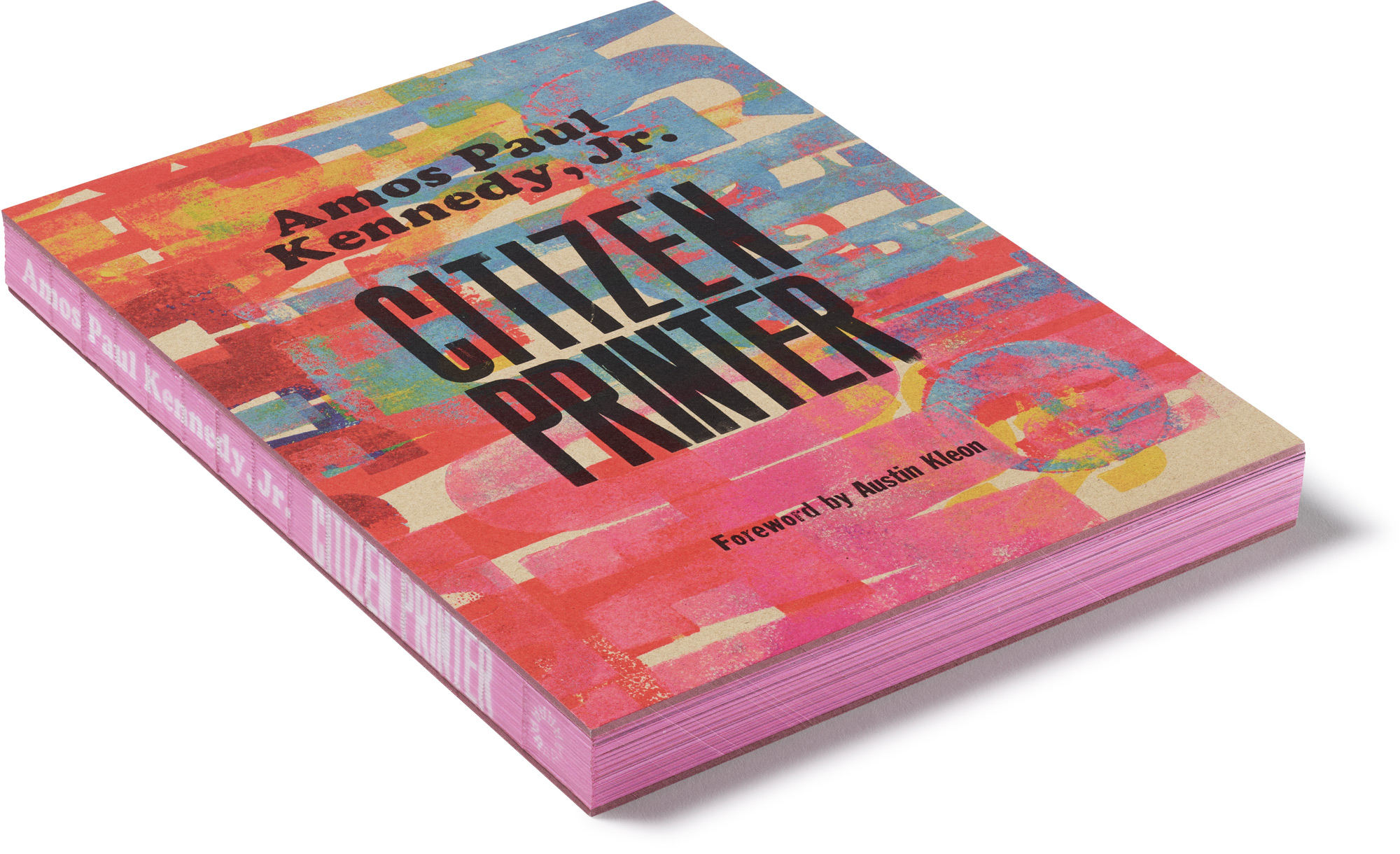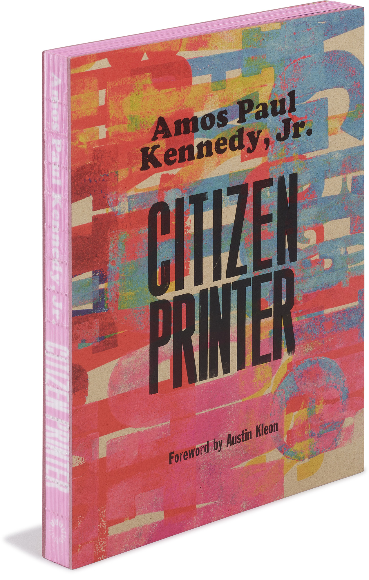 “Amos Kennedy, Jr. is both a poet and printer. For Amos, language functions as action, and he has spent a career making words move.... [A] vital and timely monograph, Citizen Printer features more than 800 reproductions representing the breadth of Kennedy’s letterpress works. At a time of global social and political upheavals and conflicts, an artist dedicated to making art accessible and available to all isn’t just an essential practice but one of the important acts of resistance we have.”