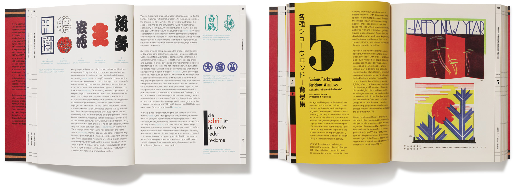 In the boom years of the 1920s, Japanese designers developed a radical new vision for their profession. Engaging modernist and avant-garde trends from abroad, refashioning local graphic and calligraphic forms, and using the latest tools and techniques, they poured fresh colors and expressive forms into all facets of consumer life, from streetscapes to the printed page. The Complete Commercial Artist, a twenty-four–volume compendium released between 1928 and 1930,is the most important—and most visually dazzling—document of this still underappreciated moment in global design history.
