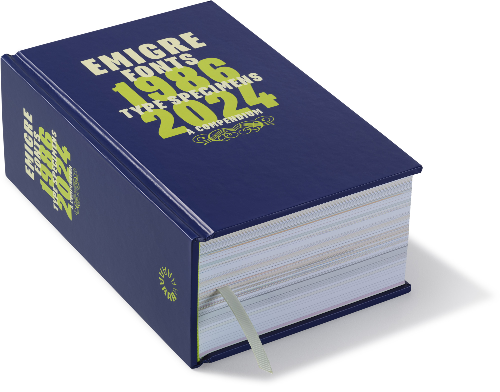 Emigre Fonts: Type Specimens, 1986–2024, reproduces forty of these booklets in a single massive reference. With a preface from Letterform Archive associate curator Stephen Coles, a foreword from type design collaborator Jeffery Keedy, and a section of never-before-published behind-the-scenes content, this volume provides a near-definitive anthology of the foundry’s remarkable story in print.