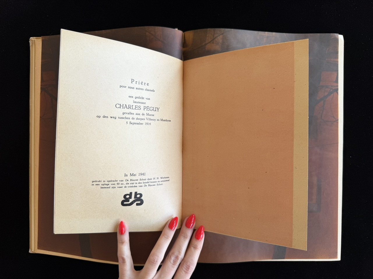 Compilation of fascimiles of works by Dutch designer H. N. Werkman (1882–1945) and thirty-one original prints by F. R. A. Henkles, W. Sandberg, and others that pay homage to the late designer.