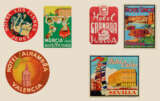 Journey across time and place with hundreds of vibrant steamer trunk labels from the Golden Age of Travel, faithfully reproduced as 330 charming full-color stickers