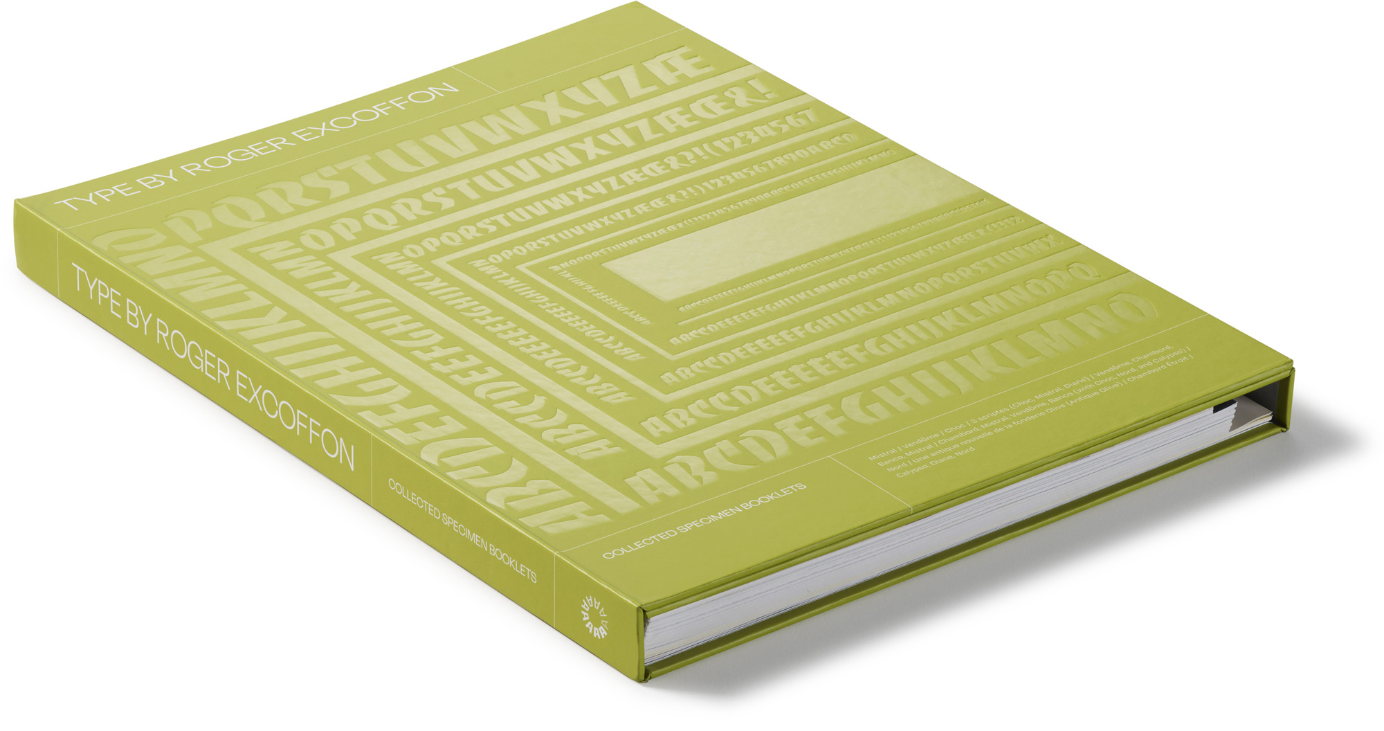 This volume reproduces specimens of typefaces by midcentury maestro Roger Excoffon. Covering his entire career with Olive, the family foundry he transformed into an international trendsetter, the selection features dazzling specimens by Excoffon himself and generously includes examples of every typeface he created for the company. Bound in their original trims with an interior pocket containing smaller booklets, they offer invaluable access to the work of one design’s most unmistakable figures.